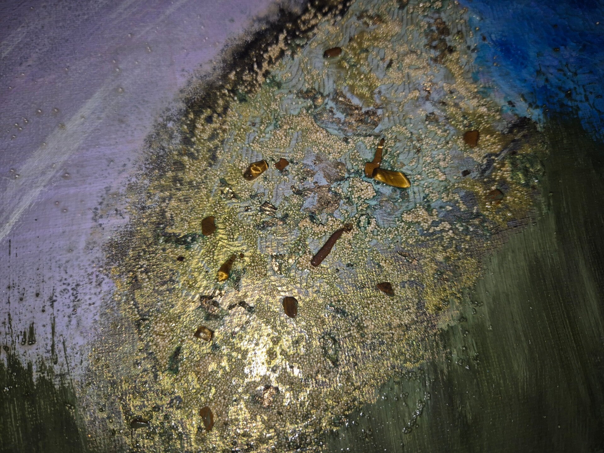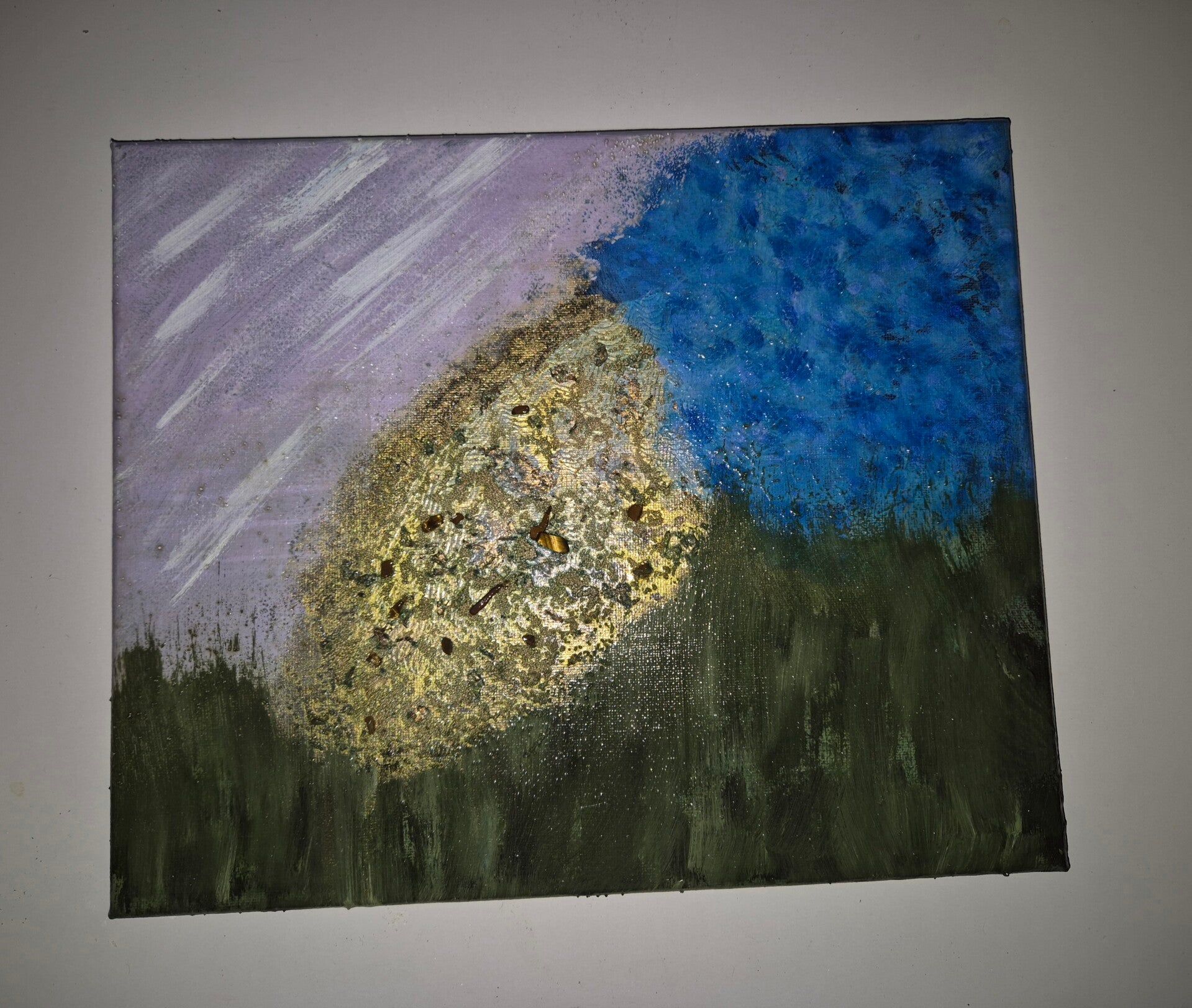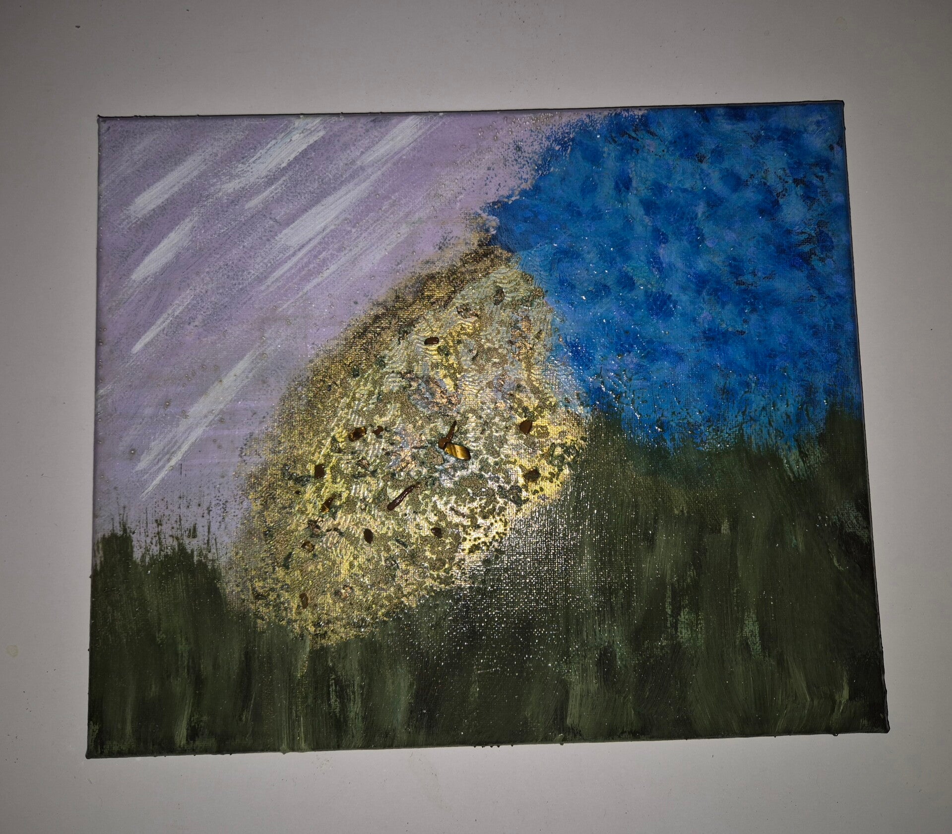 Formaat: 24x30, met handgemaakte textuur en edelsteeninbedding